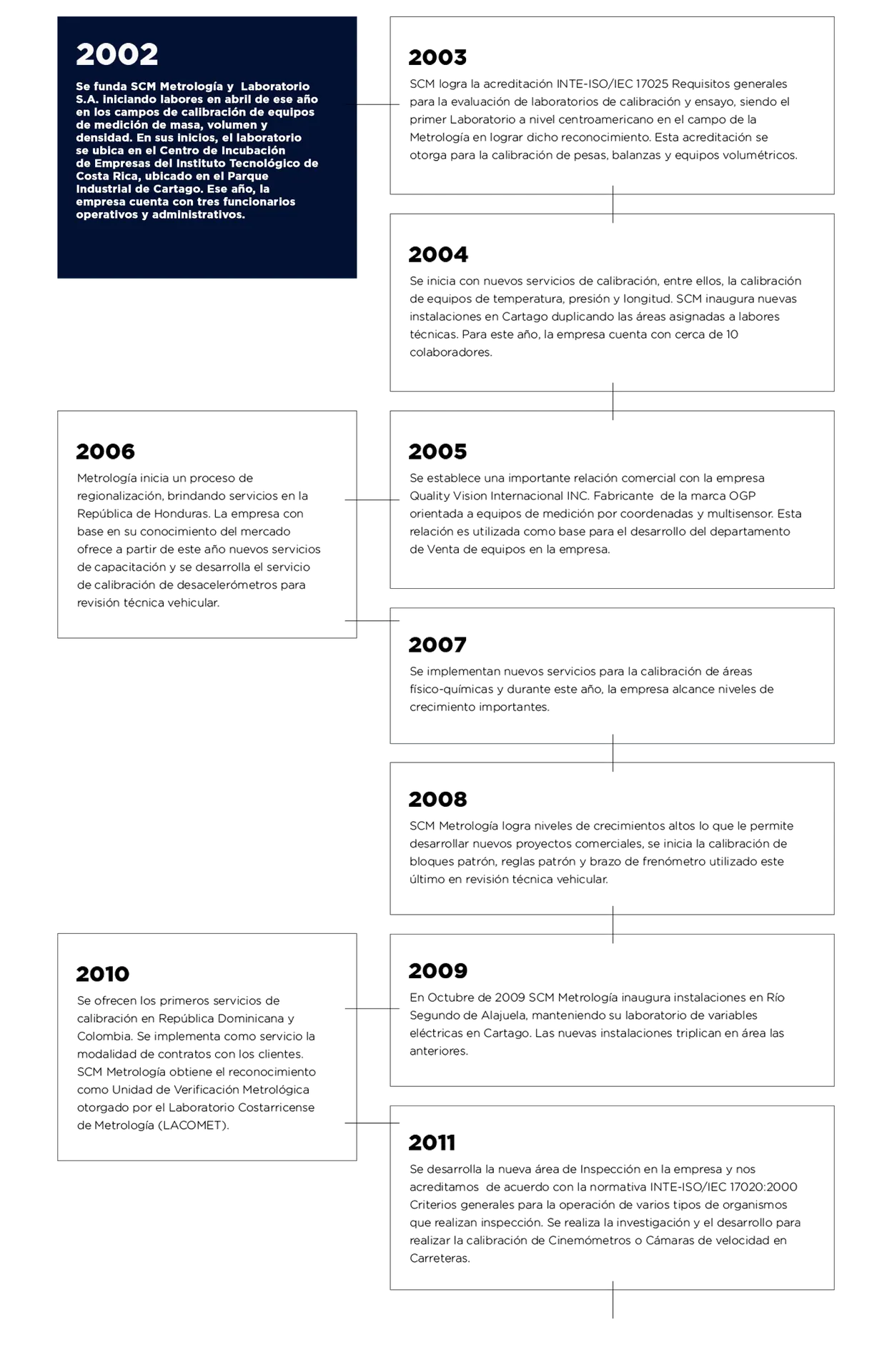 SCM Metrología y Laboratorios S.A. fue fundada en el año 2002 por personal con amplia experiencia en el campo de la metrología y con una clara visión de llevar soluciones en el campo de la Metrología a todos nuestros clientes.